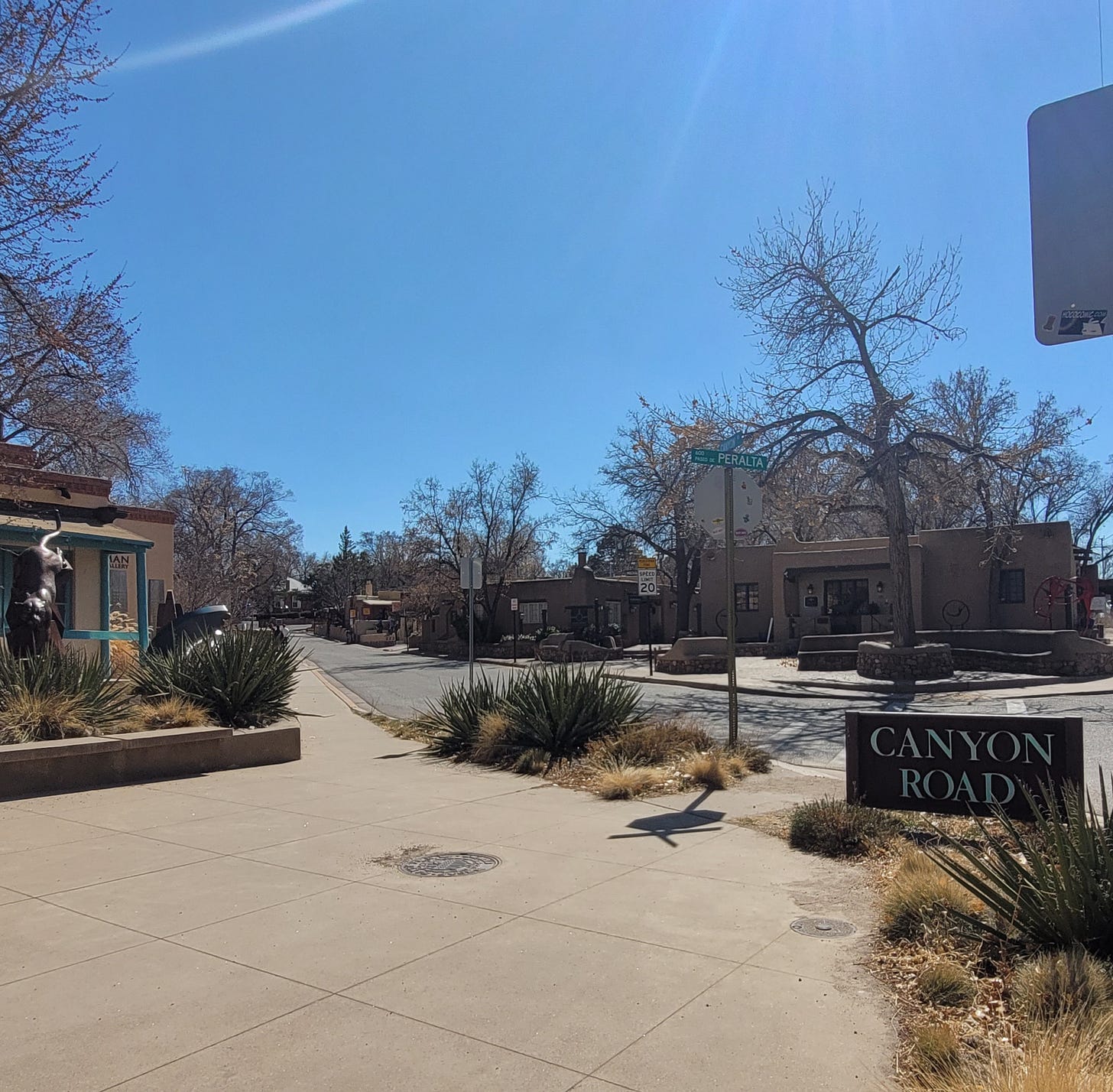 My husband is also a painter, and we set an intention this year to learn how to make a livelihood out of our art. It’s a four hour drive from Crestone, so we took a (long) detour out of Denver last weekend, and used free points to stay in a swanky inn just off Canyon Road, where all the art galleries are.